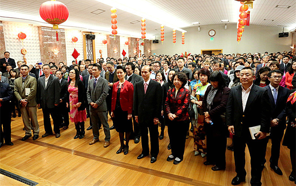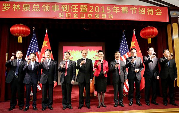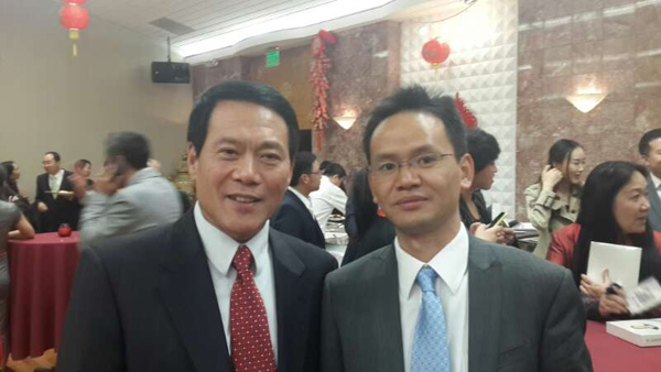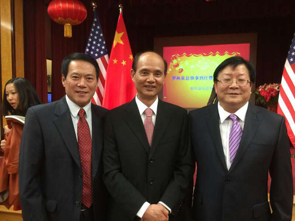 2015年2月12日晚,中國(guó)駐舊金山總領(lǐng)事羅林泉夫婦在總領(lǐng)館舉行到任暨春節(jié)招待會(huì)。舊金山灣區(qū)新僑、臺(tái)胞、留學(xué)生、中資機(jī)構(gòu)及各界代表600余人歡聚一堂,共慶農(nóng)歷羊年春節(jié)。我公司總裁陶鴻先生也應(yīng)邀參加招待會(huì),并與羅林泉總領(lǐng)事和蔣玉洪科技參贊進(jìn)行了親切的交談。