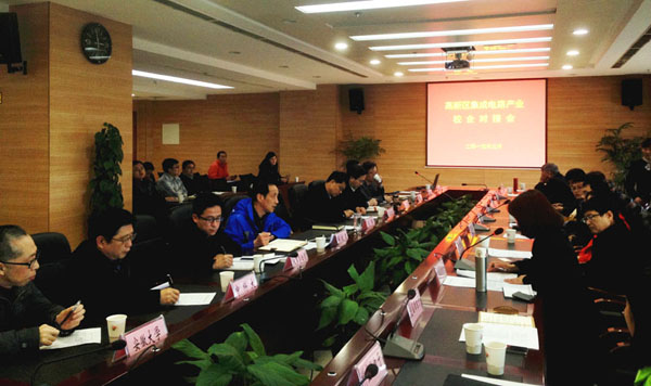 2015年3月20日下午,高新區(qū)管委會副主任陳華主持召開高新區(qū)集成電路產(chǎn)業(yè)校企對接會。我司總裁陶鴻先生、市發(fā)改委高新處丁啟民處長出席會議。