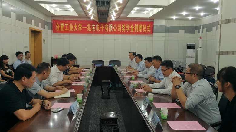 2015年9月1日下午,合工大-兆芯電子獎學(xué)金捐贈儀式在合工大學(xué)術(shù)會議中心第二會議室舉行。合肥工業(yè)大學(xué)副校長劉志峰、合肥高新區(qū)管委會副主任陳華、合肥工業(yè)大學(xué)微電子學(xué)院院長梁華國、臺灣群聯(lián)電子股份有限公司董事長潘健成、合肥兆芯電子有限公司總經(jīng)理王智麟、合肥半導(dǎo)體公司總裁陶鴻等領(lǐng)導(dǎo)出席了捐贈儀式。
