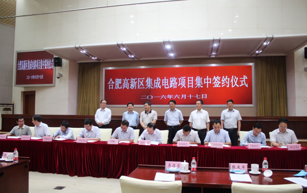 6月17日,臺(tái)灣群聯(lián)電子存儲(chǔ)芯片、臺(tái)灣敦泰科技顯示驅(qū)動(dòng)及觸控芯片等28個(gè)集成電路產(chǎn)業(yè)項(xiàng)目在合肥舉行集中簽約儀式,正式落戶合肥高新區(qū)。省委常委、合肥市委書記吳存榮會(huì)見集成電路企業(yè)負(fù)責(zé)人代表并出席項(xiàng)目簽約儀式。